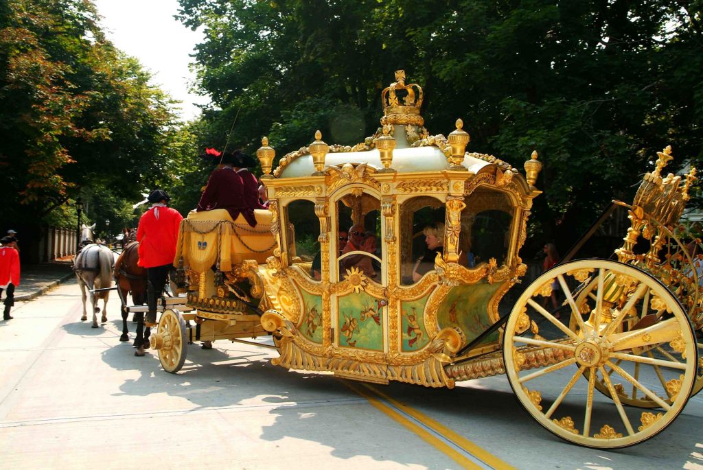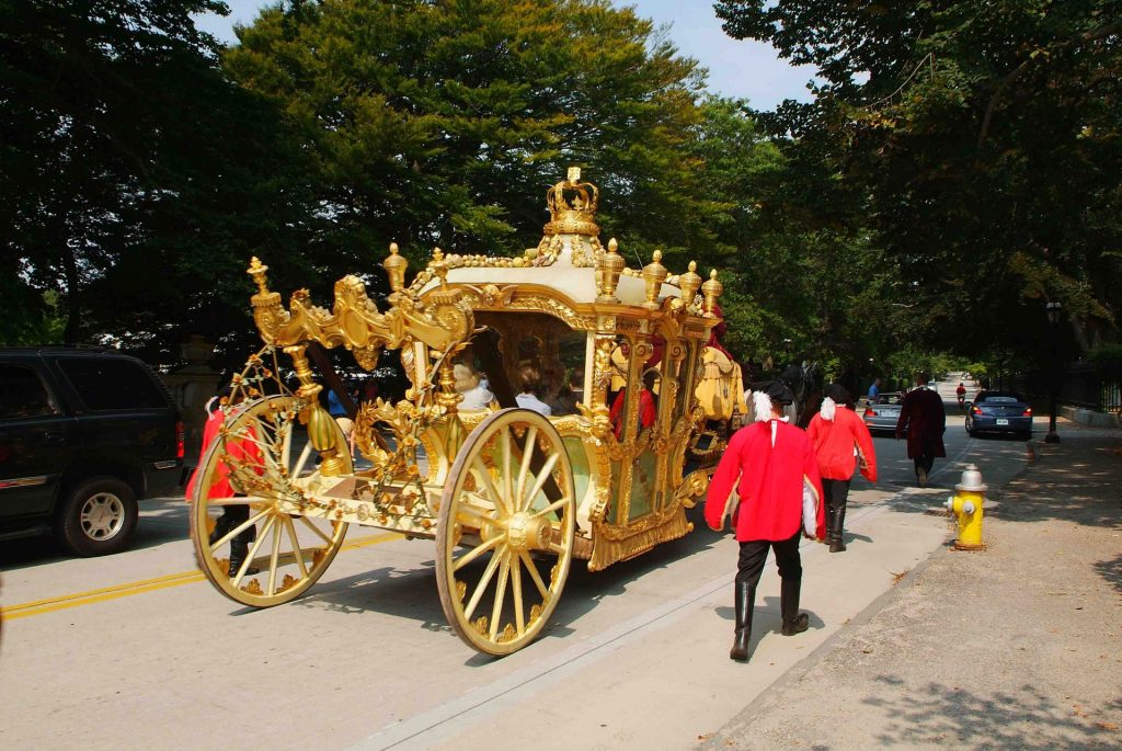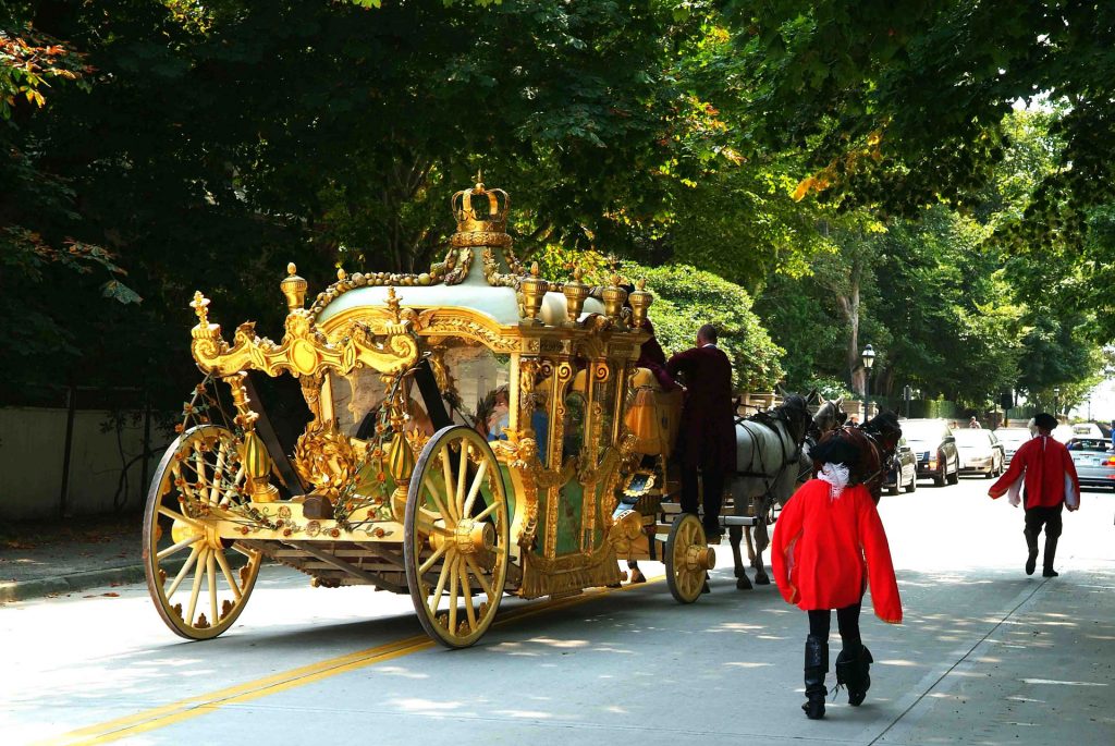 Rent The Gold Coach, the perfect accessory for your wedding or event.